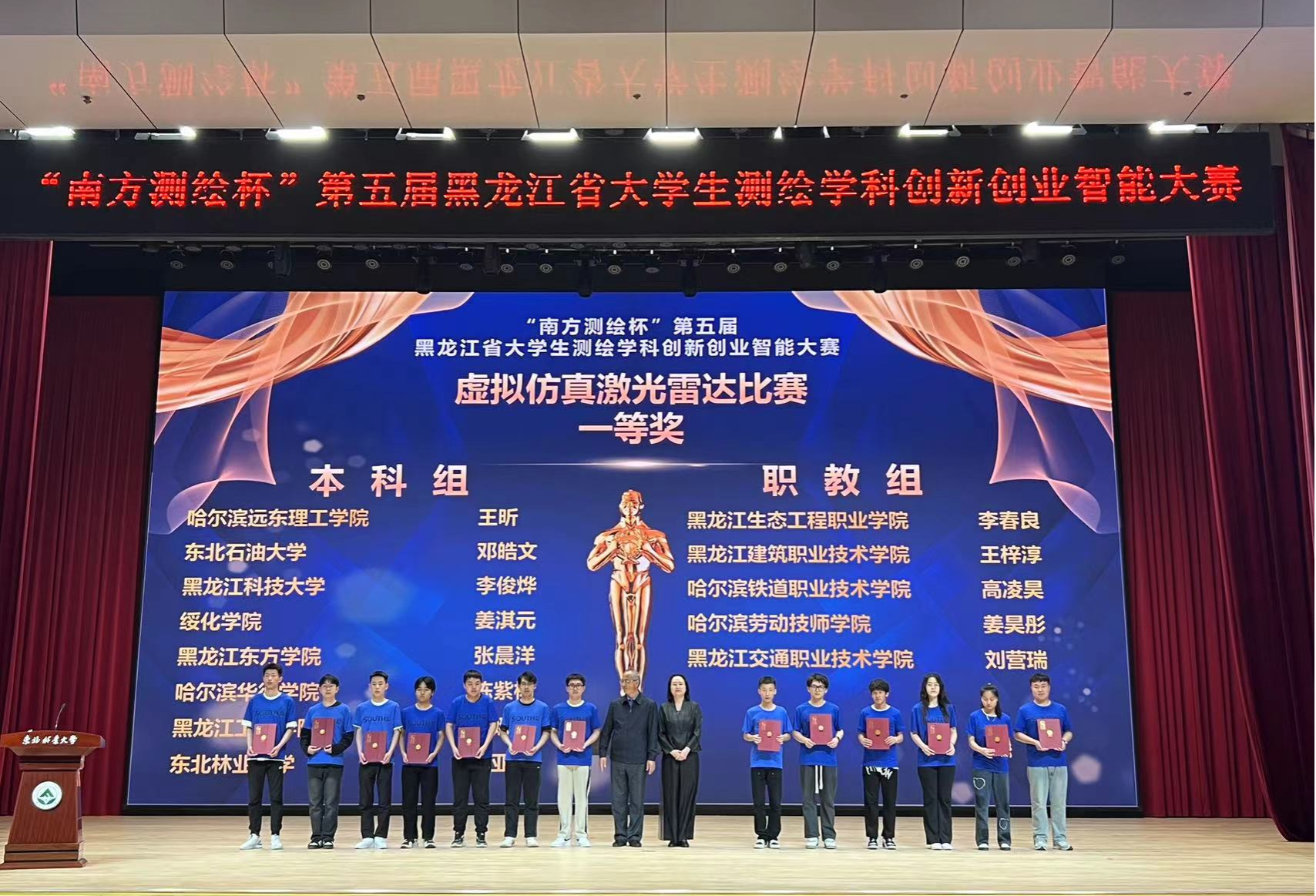 本次竞赛由黑龙江省教育厅和黑龙江省测绘地理信息局联合主办,东北林业大学和黑龙江省测绘地理信息学会教育工作委员会联合承办,广州南方测绘科技股份有限公司协办,设有“虚拟仿真数字测图”、“虚拟仿真无人机航测”、“虚拟仿真机载激光雷达”及“RTK数字测图”四个分赛项,共有来自全省35所高校、252名选手同场竞技,为历年来参赛学校及学生最多的一次。