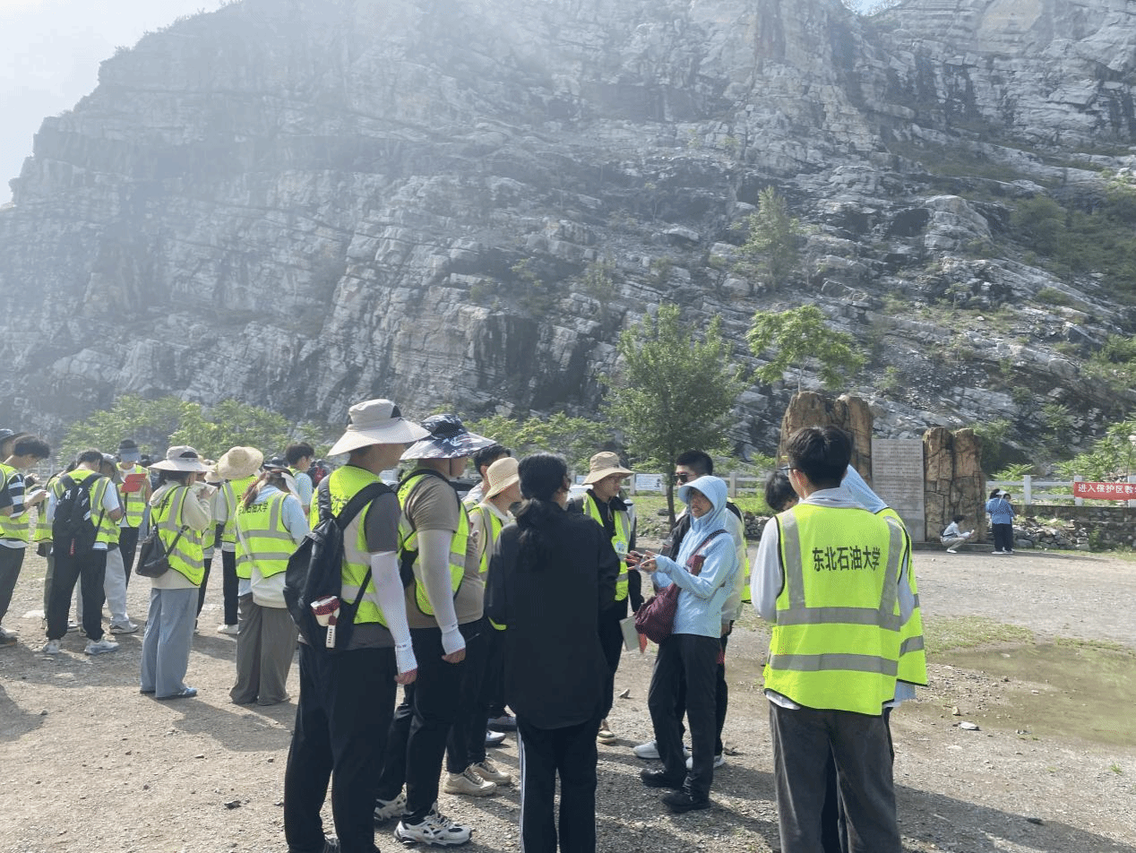 仪式结束后,师生即刻奔赴亮甲山、查庄、小北山等典型区域开展实习。教师们全程言传身教,野外现场与室内研讨结合为学生答疑解惑;学生传承大庆精神、铁人精神,不惧酷暑风雨,在地质观测、标本采集等任务中锤炼意志、精进技能。