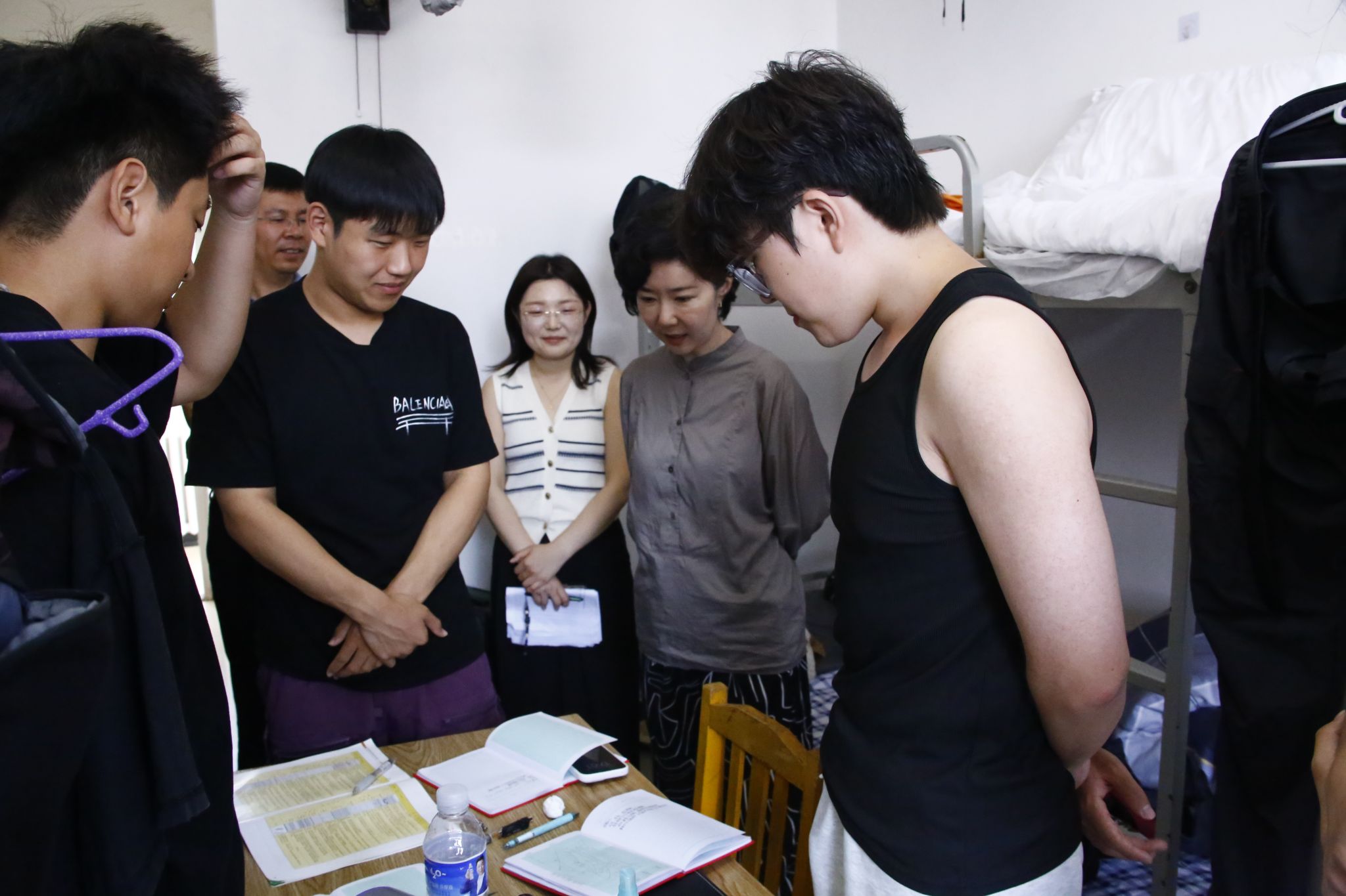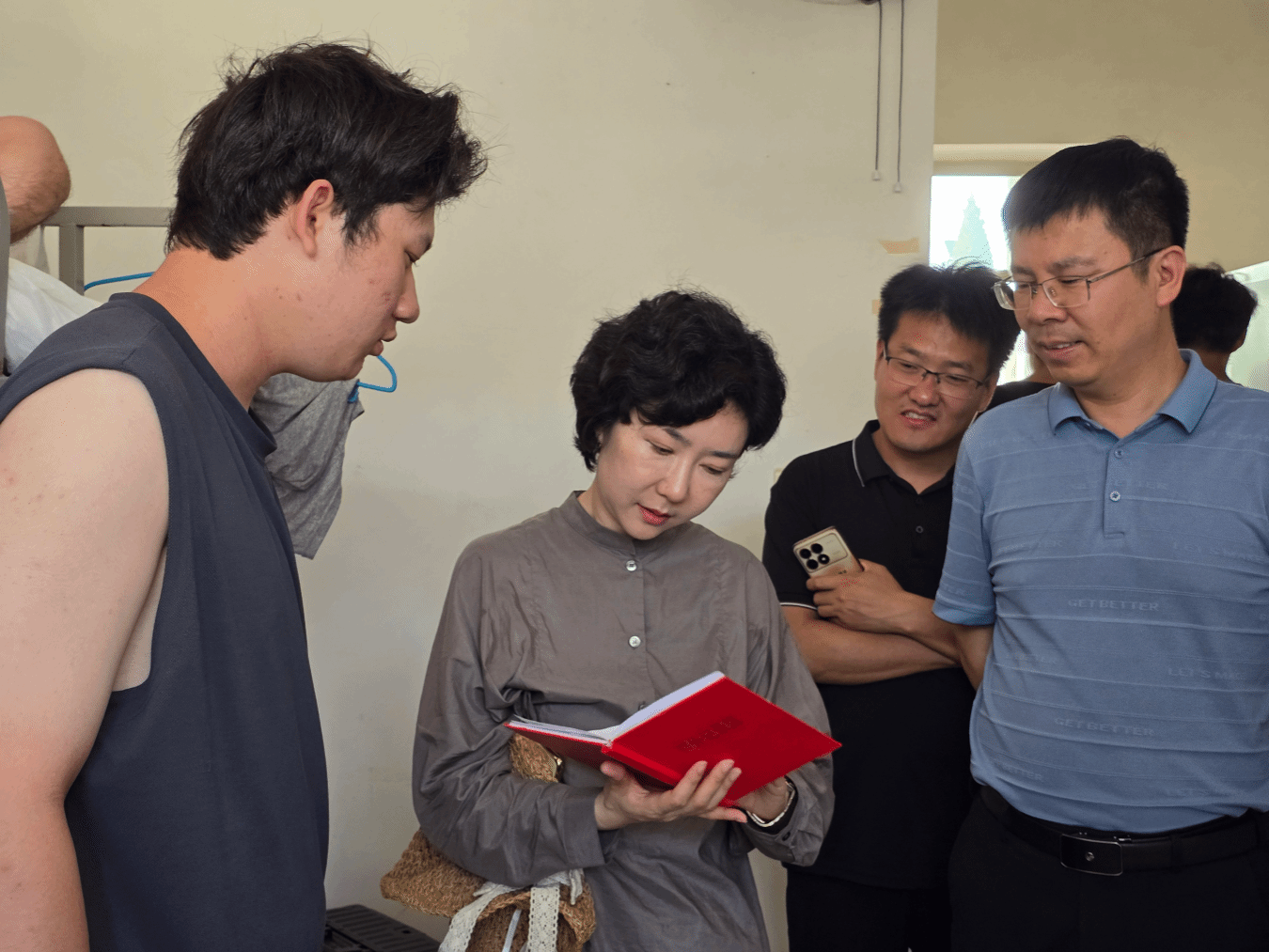 7月8日,韦丹宁、孙雨一行赶赴辽宁兴城野外实践教学基地,看望2023级资源勘查工程专业学生及带队教师,实习队长平贵东、地球信息科学与技术系主任吴海光及辅导员李娜陪同。在学生寝室,领导们与同学们亲切交谈。韦丹宁翻阅学生的野外记录本后,对实习成果给予肯定,同时叮嘱大家一定要注意安全,做好防暑防晒措施,注重将理论与实践相结合,不断提升专业素养。孙雨院长详细询问了同学们的住宿、饮食情况以及实习收获,强调“野外实习是实践能力培养的关键环节,同学们要高度重视,在实践中不断完善自身的知识体系与技能储备”。走访结束后,领导们与带队教师、辅导员进行了深入交流,对基地后勤保障工作以及师生展现出的精神状态给予高度评价。