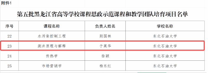 近日,黑龙江省教育厅正式公布了第五批高等学校课程思政示范课程和教学团队培育项目名单。Ky官网申报的《测井原理与解释》课程成功入选,荣获省级课程思政示范课程称号,相应教学团队同时获评省级课程思政示范教学团队。