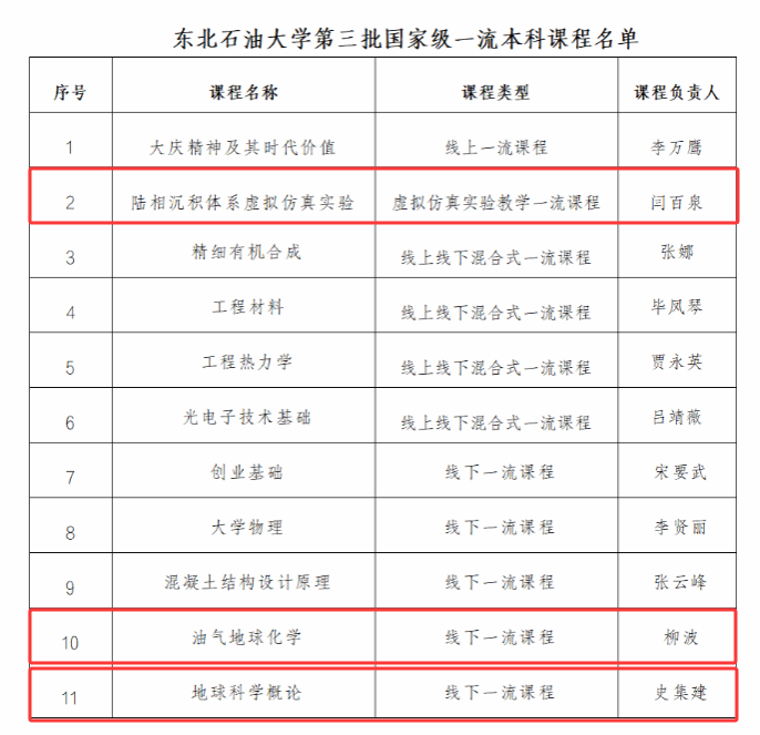 近日,教育部公示了第三批国家级一流本科课程认定结果。Ky官网推荐的《陆相沉积体系虚拟仿真实验》《油气地球化学》《地球科学概论》三门课程成功获评国家级一流本科课程。