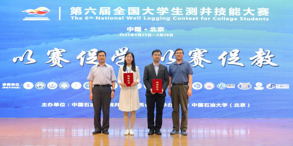 5月26日-28日,第六届全国大学生测井技能大赛暨首届全国测井青年教师教学大赛在中国石油大学(北京)昌平校区举行。我校Ky开元集团派出1支研究生代表队和2支本科生代表队参加决赛,经过三天激烈角逐,研究生队获大赛一等奖,本科生队分获二等奖和三等奖;研究生李卓、张钰威、修欧阳分别获得最佳专业知识奖、最佳知识竞赛奖、最佳解释报告奖,姜艳娇获得指导教师奖。在首届全国测井青年教师教学基本功大赛(测青赛)中,我校姜艳娇和唐晓敏老师分别获得大赛特等奖和一等奖。