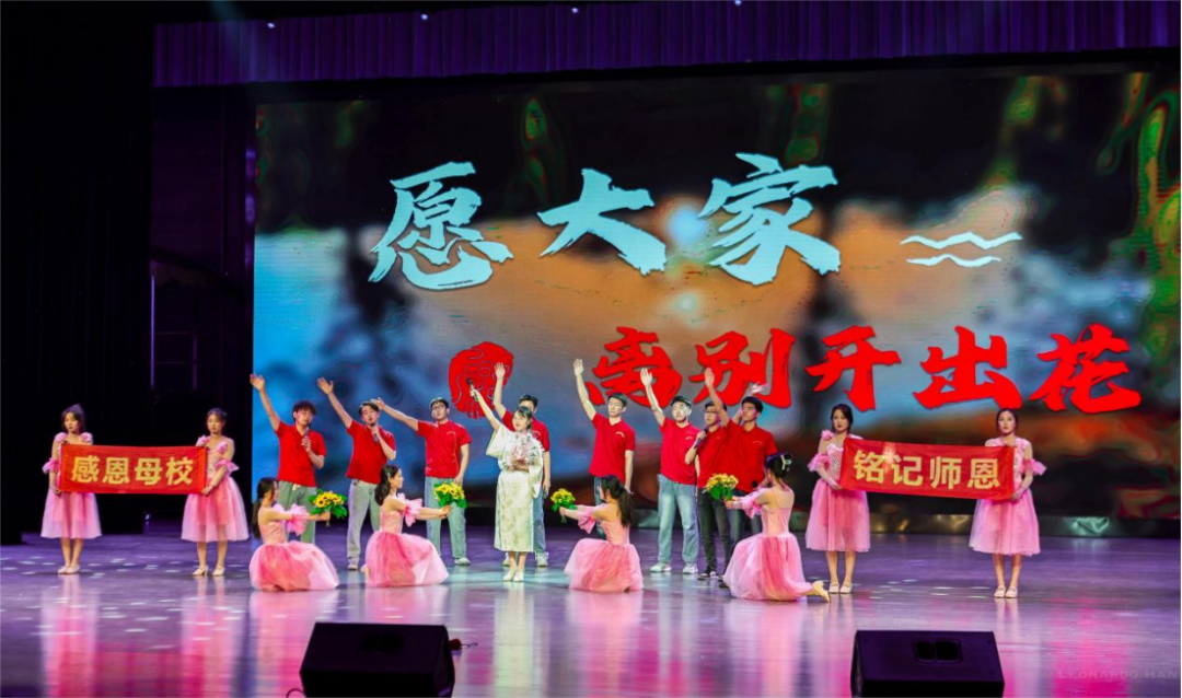 独唱《灯火里的中国》以“灯火里的中国,胸怀辽阔”等词句,传达了对祖国繁荣发展的美好祝愿,也寄托了毕业生对未来的期许。