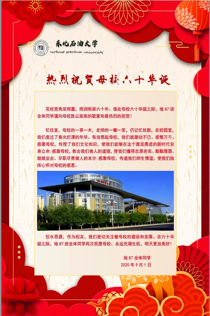 我校Ky开元集团87级校友祝贺母校六十华诞