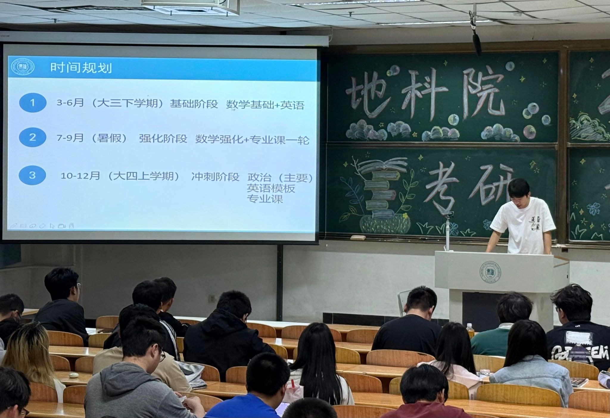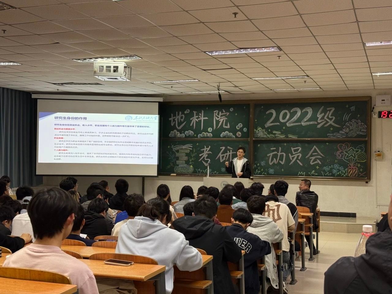 资源勘查系主任蒋飞、勘查技术系主任王宁立足学科前沿动态,分别从行业发展态势、学术能力提升等维度展开专业指导。通过剖析地学领域的人才需求结构,系统阐释了攻读研究生学位对职业发展轨迹的赋能作用,为学生构建起清晰的学业进阶图谱。